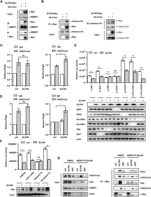(5)co-IP揭示SLFN5通过募集组蛋白甲基转移酶增加U5-R的抑制性表观遗传标记
