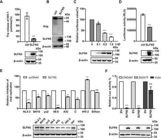 (1)SLFN5 抑制 HIV-1 的复制和病毒蛋白的表达