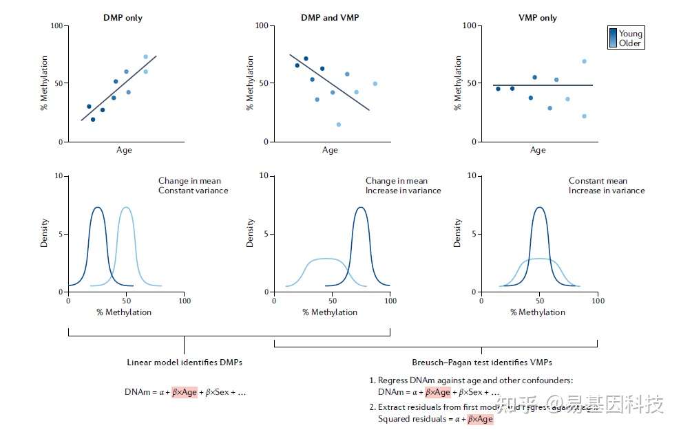 DMP和VMP各自促进衰老的确切机制还没有很好的定义。两个年龄相同的个体(因此在DMP上具有相似的模式)可能在VMP上表现出不同的模式(图4);这些不同的模式可能反映了在关键基因组区域引入了额外的噪音,这些噪音随着年龄的增长自然变得失调。