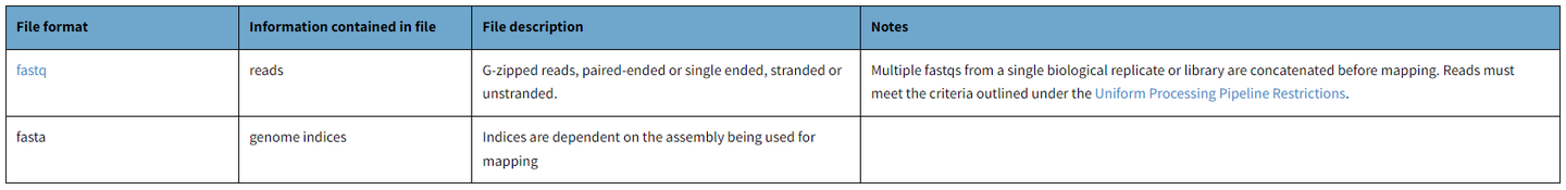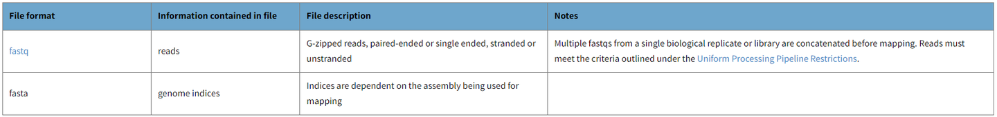 - 读长应至少为50个碱基对,鼓励更长的读长;分析流程可以处理低至25个碱基对的读长。可以配对或单端测序。