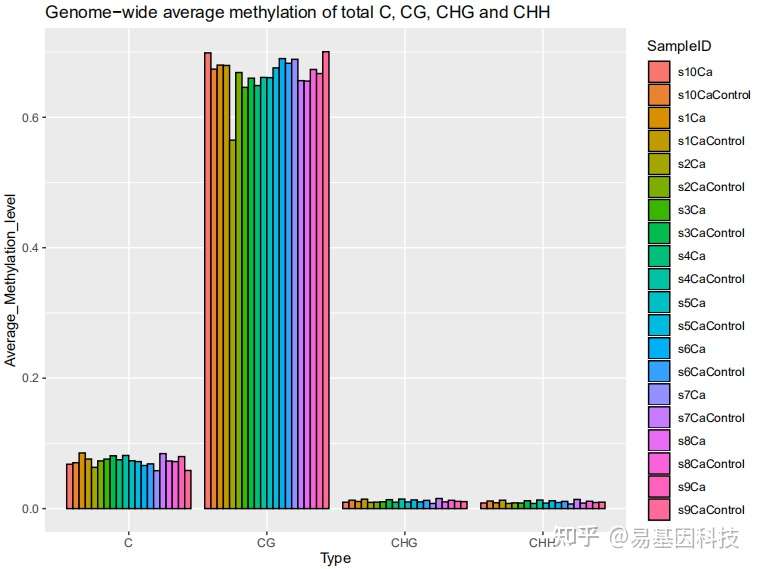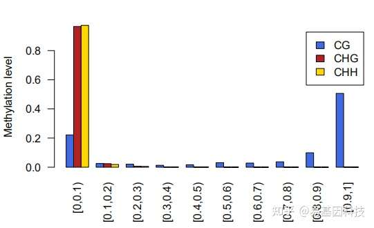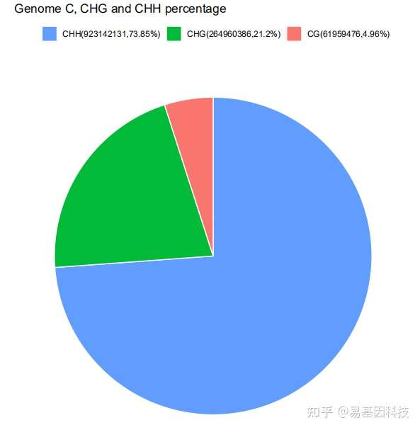 图6:CG, CHG 和 CHH 三种类型的甲基化位点的数量和比例