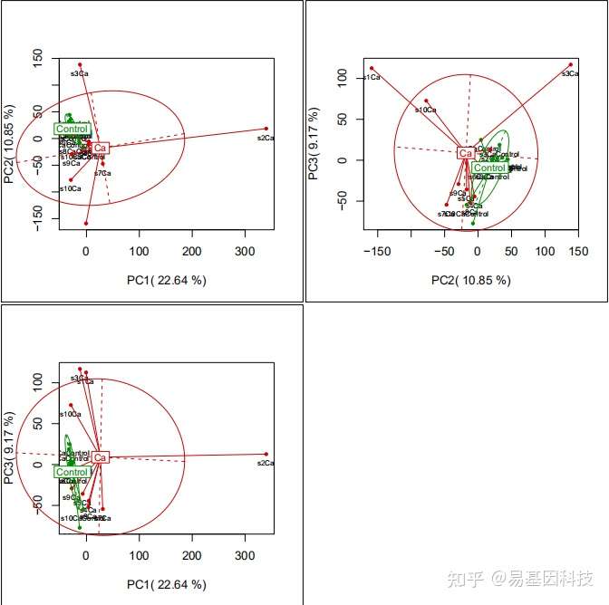 主成分析(PCA)是一种常用的数据降维方法,其目标是寻找一组新的变量,使它们反映原始数据的主要特征。每个新变量是原有变量的线性组合,称为“主成分”。这组新变量中,只有少数几组变量能够反映原有变量的主要特征,通过这种方式,可以使原有数据的维度降低,更易于体现各样本的特征。下图为基于样本甲基化图谱的主成分析:
