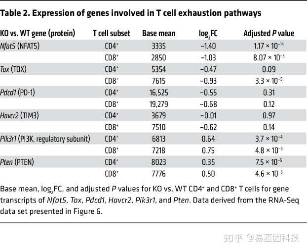 表2:参与T细胞耗竭通路的基因表达