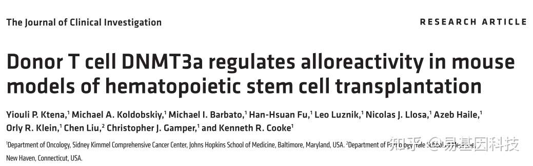 易基因|文献科普:DNA甲基化测序揭示DNMT3a在调控T细胞同种异体反应中的关键作用