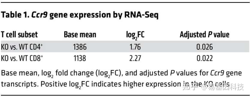 表1:RNA-seq显示的Ccr9基因表达
