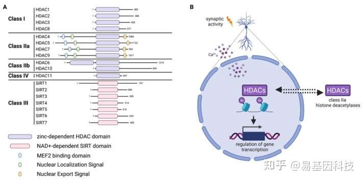 - 组蛋白去乙酰化酶和sirtuins分类。不同蛋白的主要结构域。