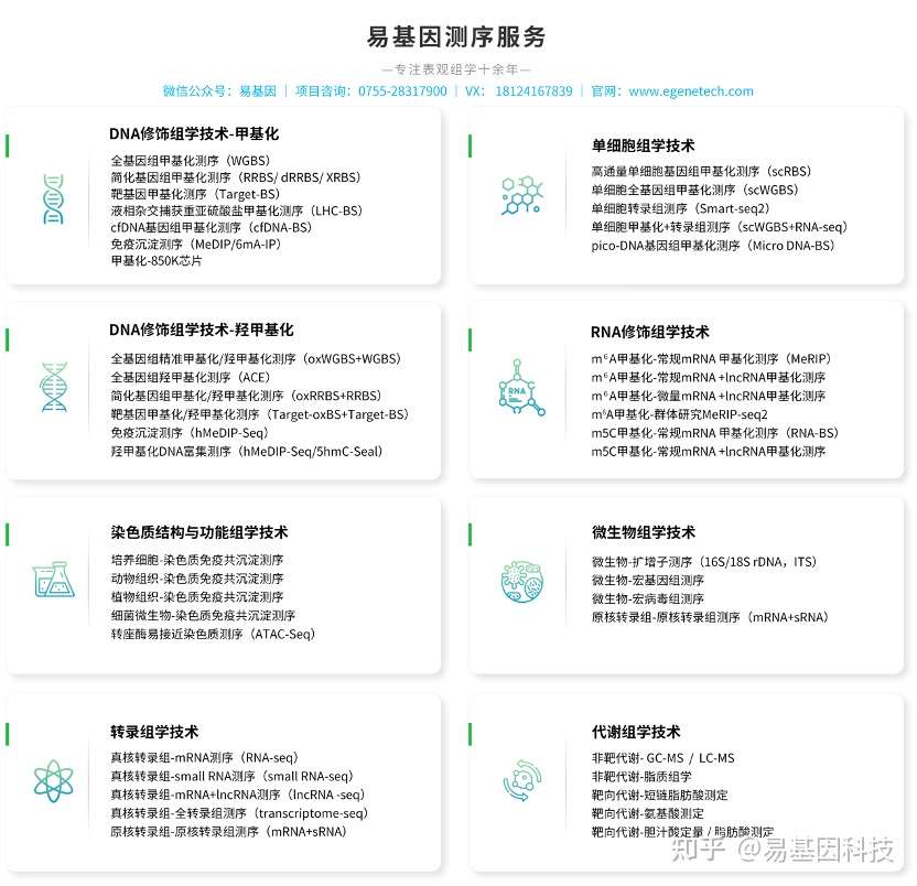 易基因科技提供全面的表观组学测序服务,有DNA甲基化、组蛋白修饰、RNA甲基化测序需要的老师可联系0755-28317900。