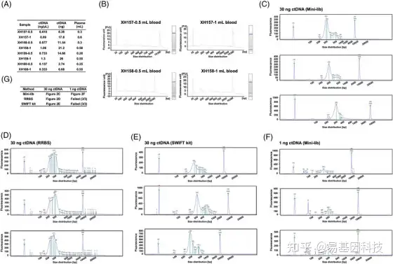 C-E. LabChip GX touch对30 ng ctDNA input进行文库制备。