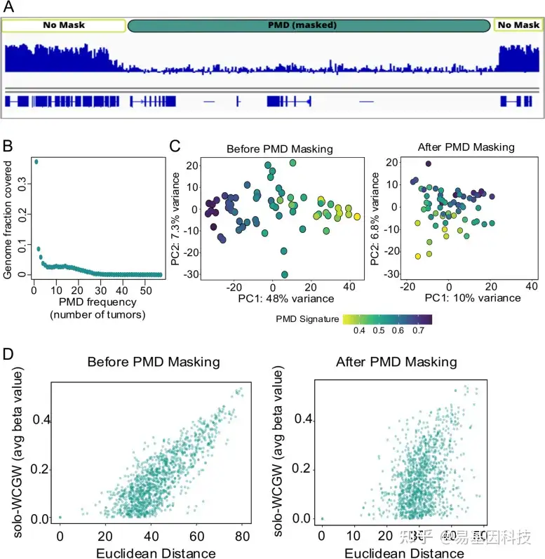 - PMD-masking strategy说明。鉴定PMD后,在后续分析中mask这些基因组区域;
