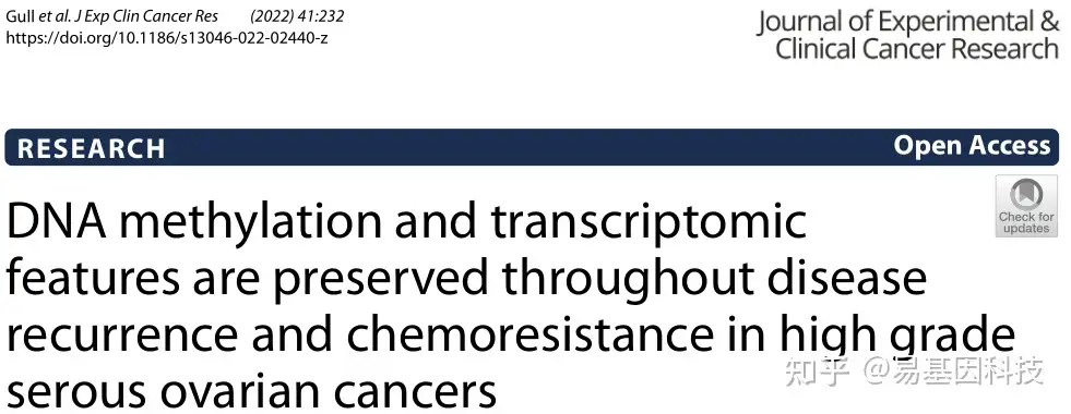 易基因|疾病研究:DNA甲基化和转录组学特征在高浆卵巢癌复发和耐药过程中高度保守