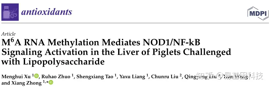 易基因|脂多糖诱导的仔猪肝脏损伤模型中m6A RNA甲基化介导了NOD1/NF-kB信号激活