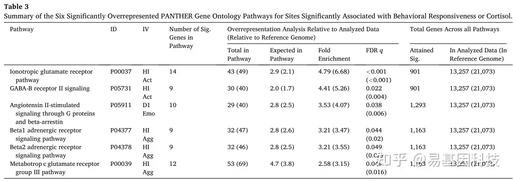 表3:与行为反应或皮质醇显著相关位点的六个过表达PANTHER的GO通路分析
