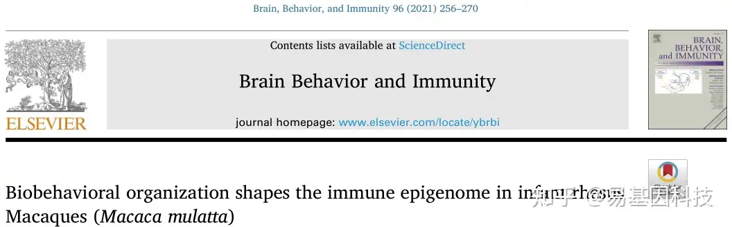2021年,《Brain, Behavior, and Immunity》杂志发表题为“Biobehavioral organization shapes the immune epigenome in infant rhesus Macaques (Macaca mulatta)”的研究论文,该研究通过简化基因组甲基化测序(RRBS)等实验揭示生物行为组织塑造恒河猴仔猴的免疫表观基因组特征。