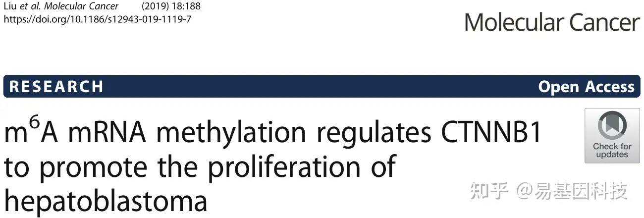 易基因:m6A mRNA甲基化修饰调控CTNNB1促进肝母细胞瘤增殖的机制研究|Mol Cancer