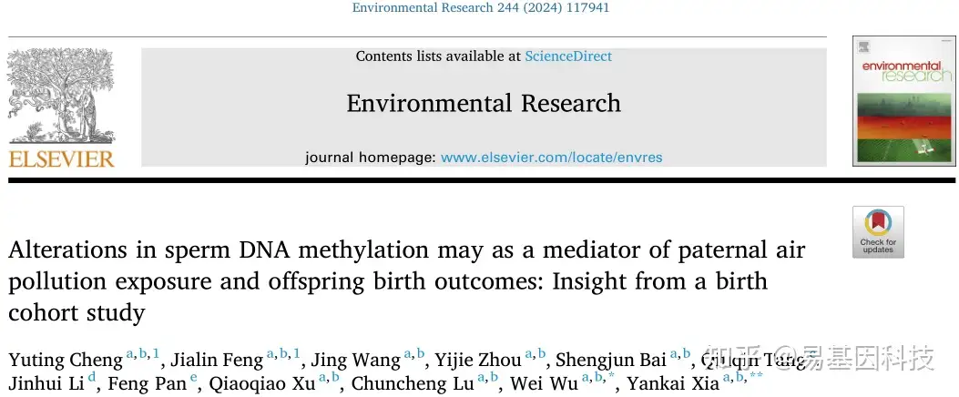 易基因:RRBS等揭示父代空气污染暴露通过精子DNA甲基化变化介导子代出生结局 | 队列研究