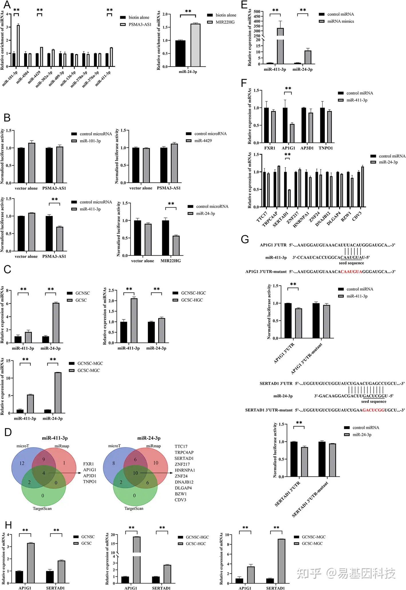 - 检测miRNA过表达的GCSC中靶基因表达水平。