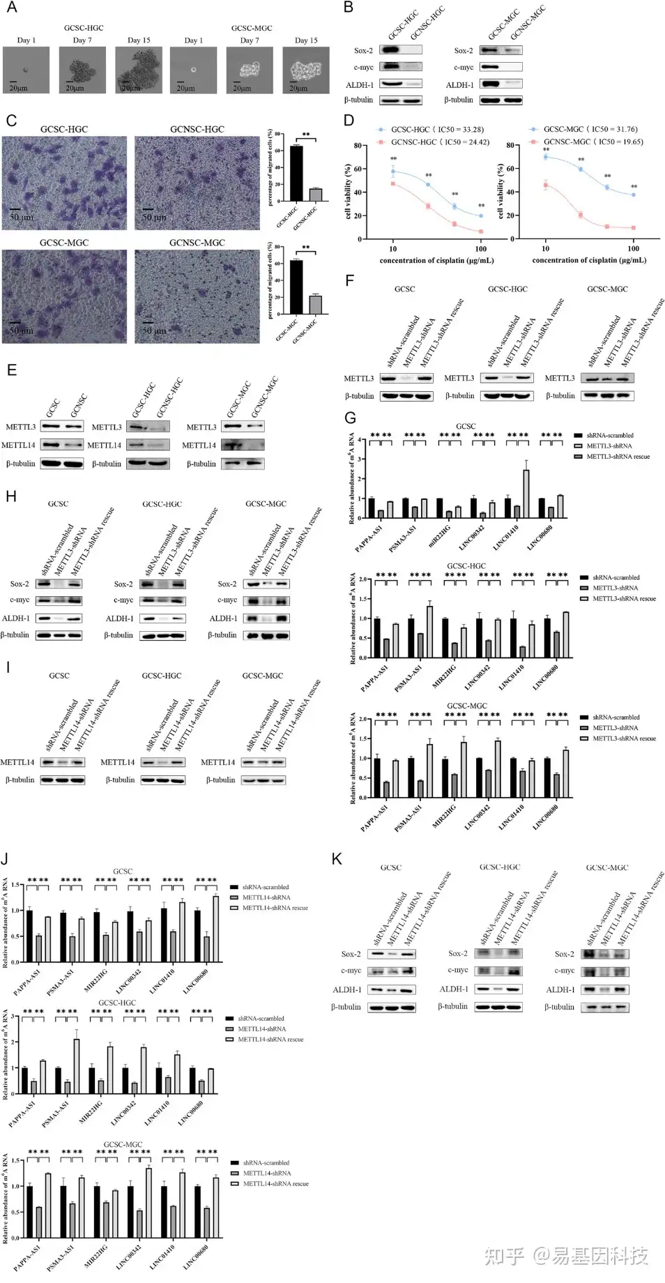 - 检查GCSC中甲基转移酶METTL3和METTL14的表达。