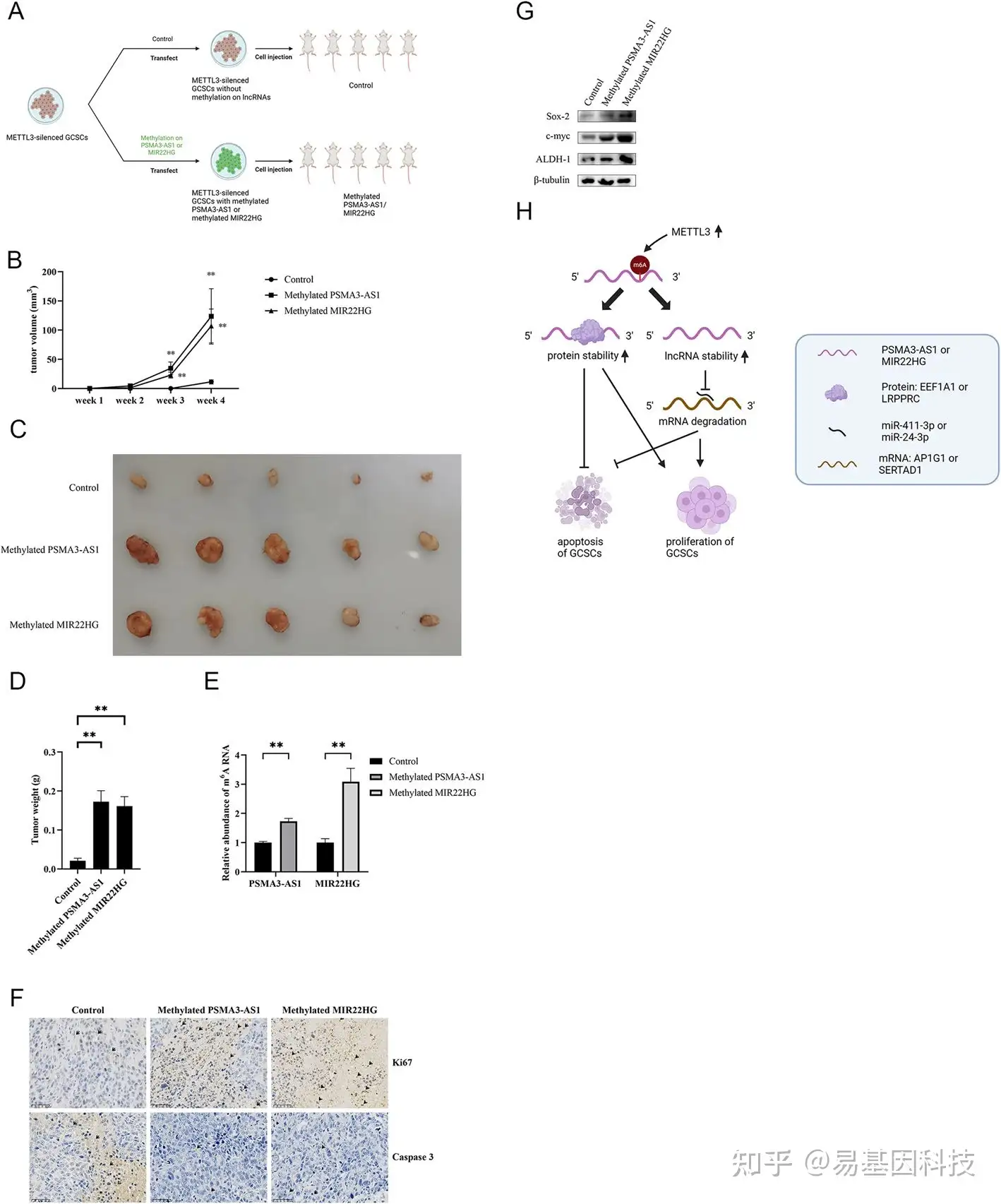 图7:lncRNA的m6A修饰对体内GCSC肿瘤发生的影响。