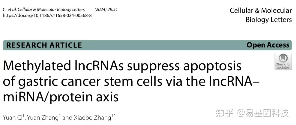 易基因: MeRIP-seq揭示lncRNA甲基化通过lncRNA-miRNA/蛋白质轴抑制胃癌干细胞凋亡