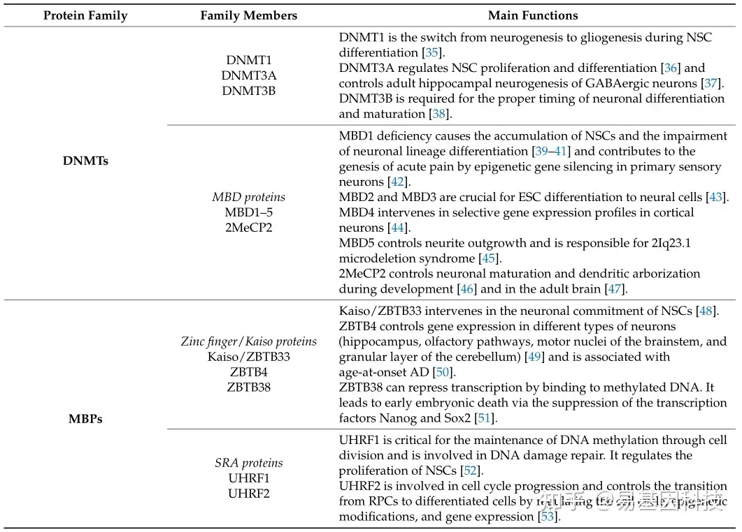 表1. 在神经组织中作用于DNA甲基化的蛋白质