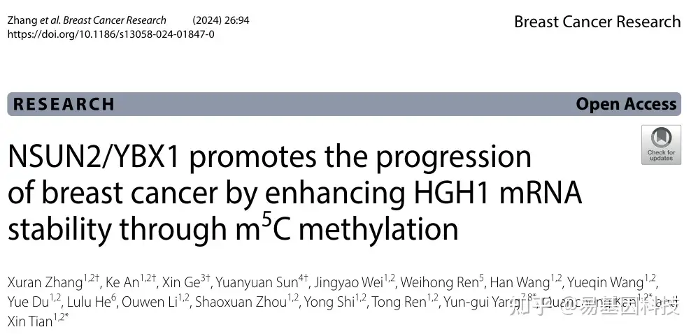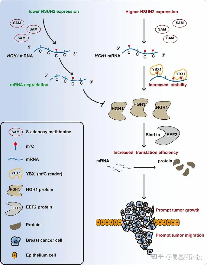 易基因:NSUN2/YBX1介导m5C甲基化增强HGH1 mRNA稳定性以促进肿瘤进展 | 科研速递