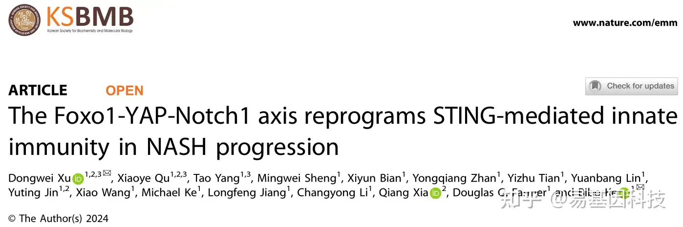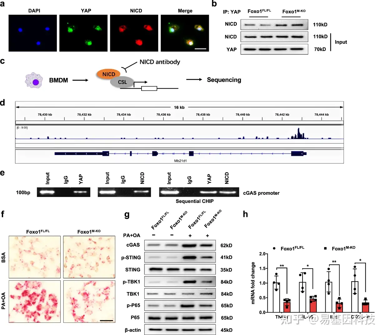 易基因:Exp Mol Med:ChIP-seq等揭示Foxo1-YAP-Notch1轴在疾病进展中的表观调控作用——重编程STING介导的先天免疫