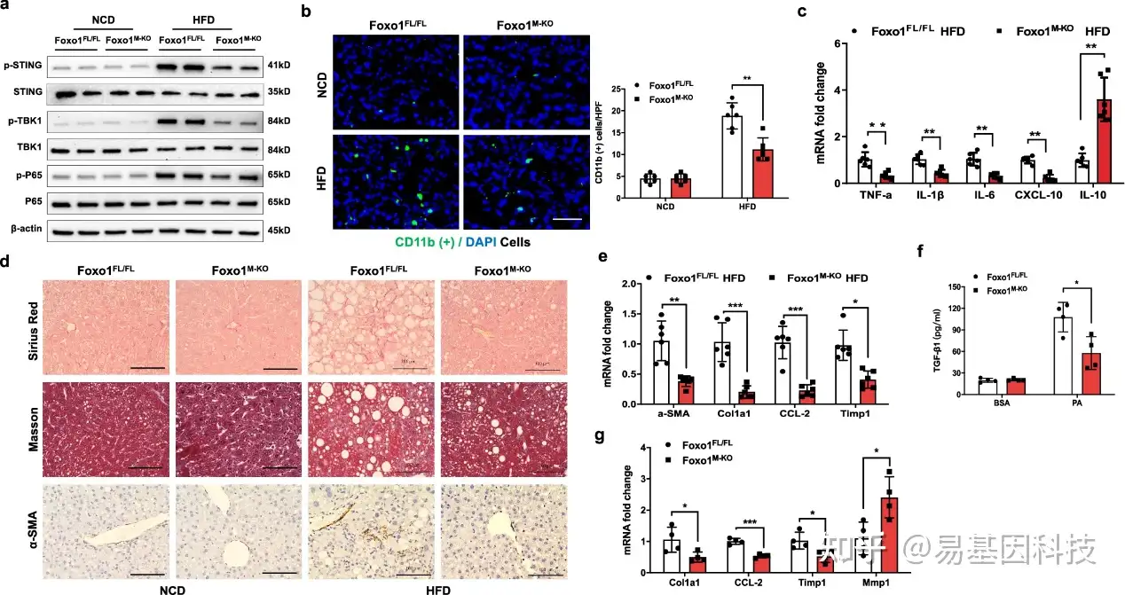(2)巨噬细胞Foxo1缺失抑制了 STING 介导的 HFD型NASH肝脏炎症和纤维化