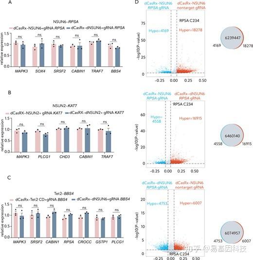 RCMS dCasRx-NSUN6 编辑器的特异性和非靶甲基化测序