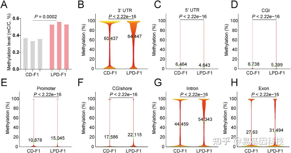 LPD-F1卵母细胞中的整体DNA高甲基化