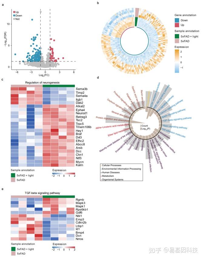 从海马体(hippocampus,HPC)组织中提取总RNA并测序,揭示光对5xFAD小鼠海马体相关基因表达的改善效果