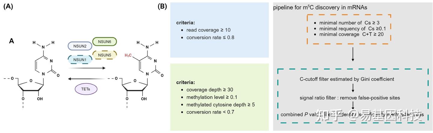 图1:mRNA中m5C的动态调控过程及RNA亚硫酸盐测序分析流程。
