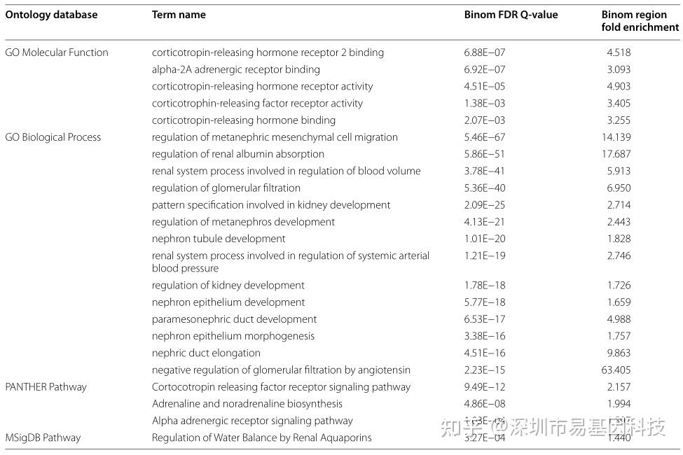 表4:可能与eGFR相关区域的GREAT GO富集分析