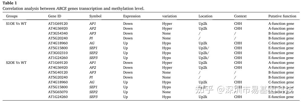 图4:SAMOE中ABCE基因的甲基化和表达水平。