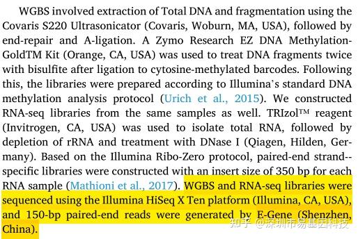 技术平台:WGBS、RNA-seq(易基因金牌技术)