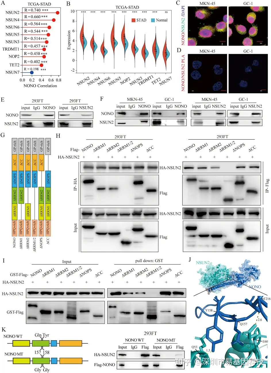 图4:NONO蛋白与NSUN2在胃癌中的相互作用。