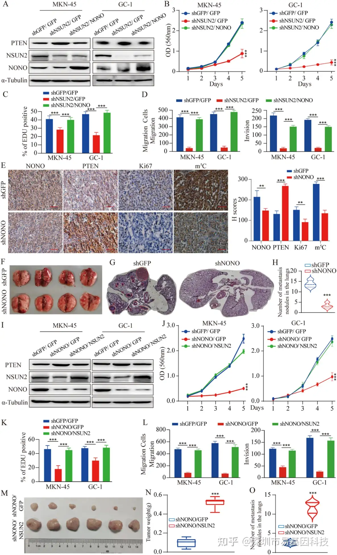 (4)NONO/NSUN2/PTEN轴的调控机制——促进GC进展