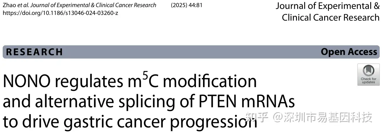 易基因:JECCR/IF11.4:RNA-BS揭示NONO蛋白通过调控PTEN mRNA的m5C修饰和可变剪切促进胃癌进展|项目文章
