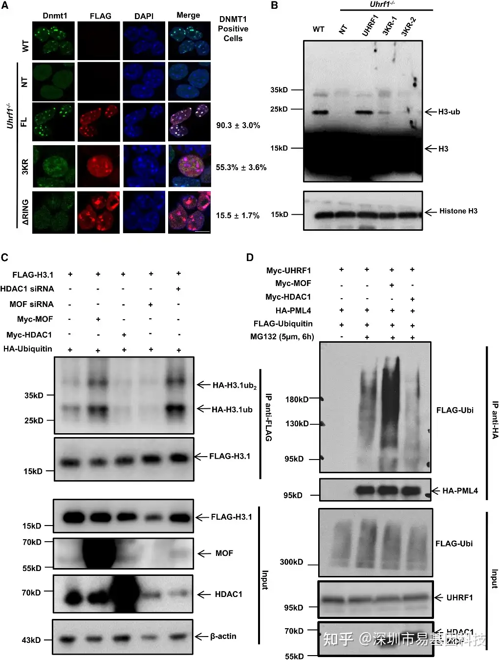 (4)MOF/HDAC1介导的UHRF1乙酰化对于通过H3泛素化在DNA甲基化维持过程中高效招募DNMT1至关重要