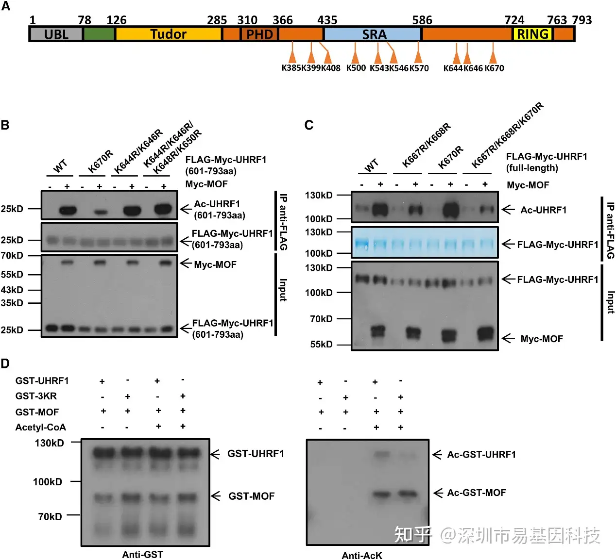 图3:通过定点突变鉴定MOF介导的UHRF1乙酰化位点