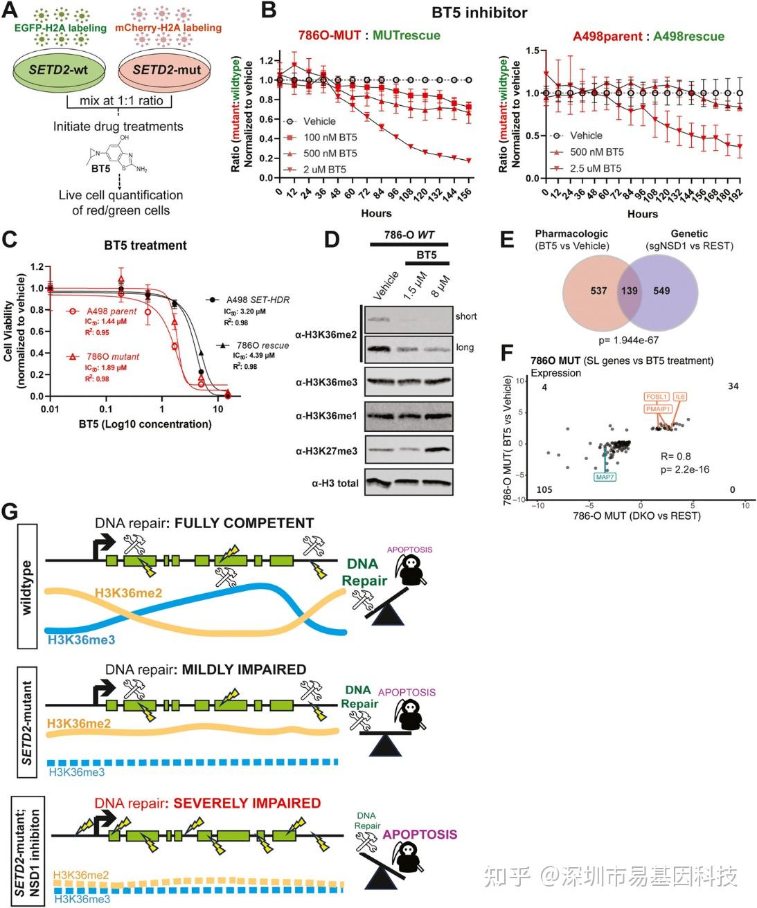 图7:使用BT5抑制NSD1重现SETD2突变SL的遗传模型