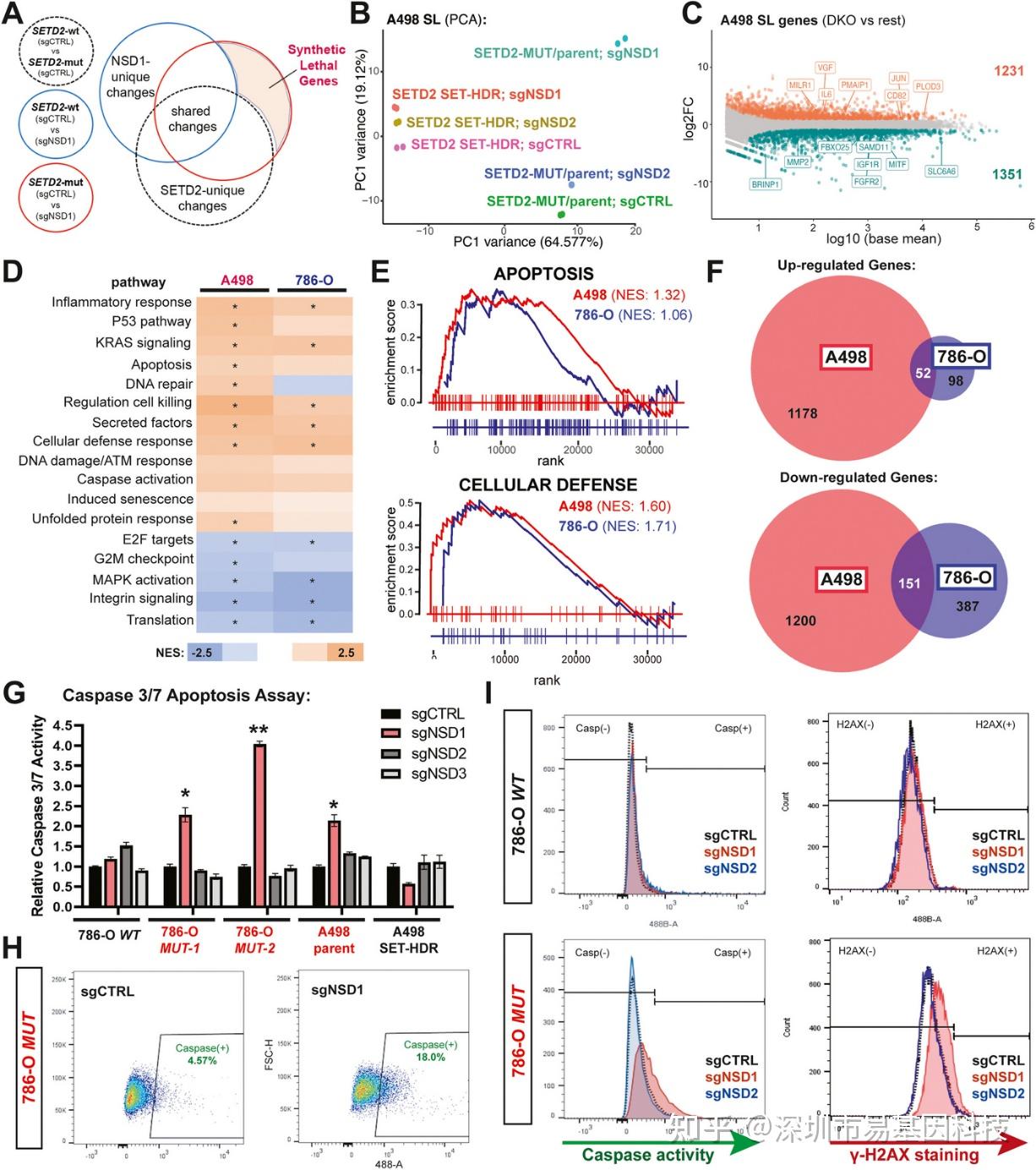 图1:全基因组筛选鉴定NSD1为SETD2缺失细胞中的潜在SL修饰因子。