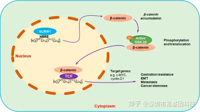 (3)NURR1通过直接转录激活CTNNB1来激活前列腺癌细胞中的β-catenin信号通路。