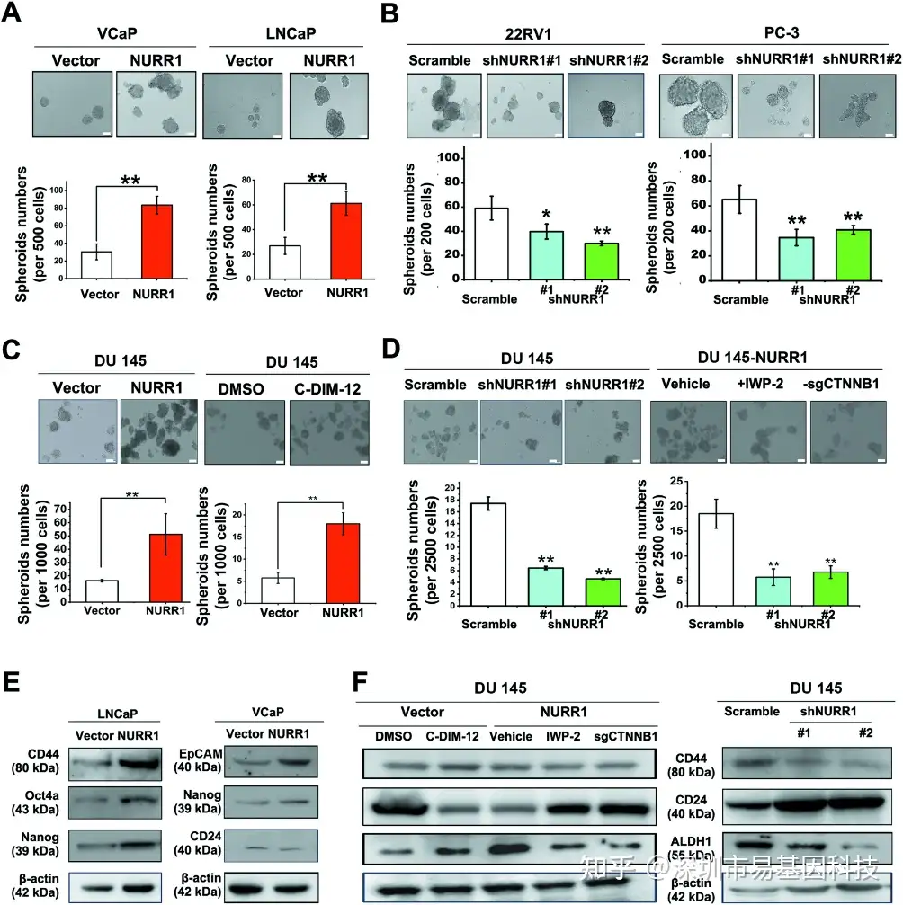 图4:NURR1能够增强前列腺癌细胞的体外干细胞特性。