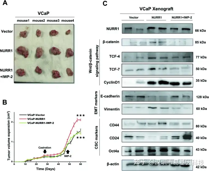图 2:Wnt/β-catenin信号通路参与NURR1过表达的前列腺癌