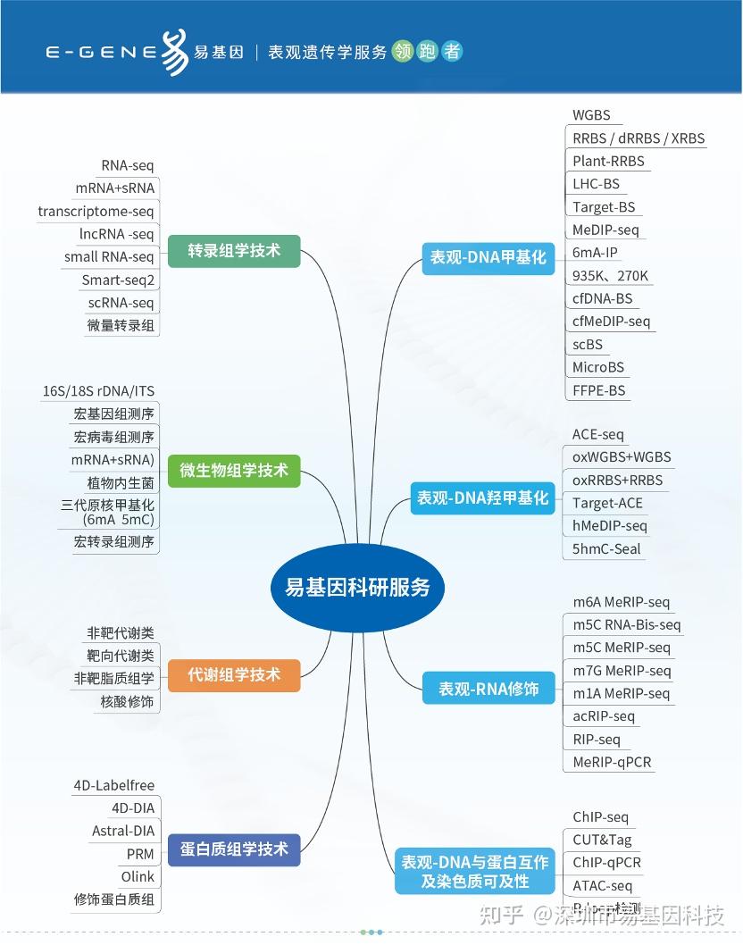 易基因提供全面的表观基因组学(DNA甲基化、DNA羟甲基化、cfDNA)和表观转录组学(m6A、m5C、m1A、m7G、ac4C、RNA与蛋白互作)、DNA与蛋白互作及染色质开放性技术方案(ChIP-seq、ATAC-seq),详询易基因:0755-28317900。