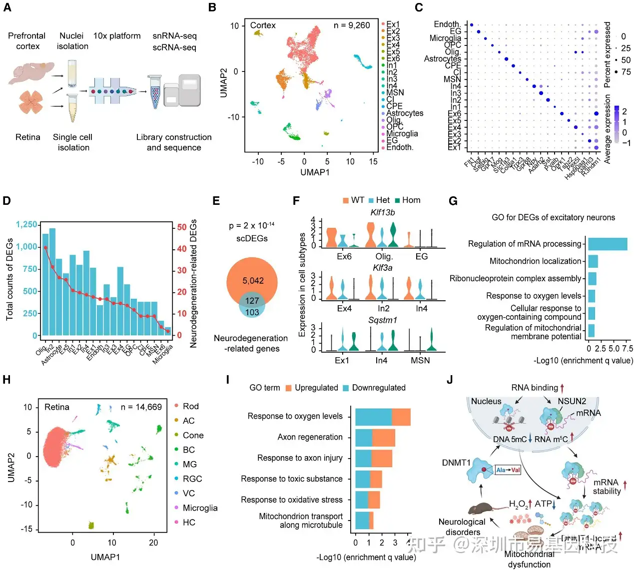 scRNA-seq和snRNA-seq:分析神经组织中不同细胞类型的基因表达变化,揭示了广泛的氧化应激反应。