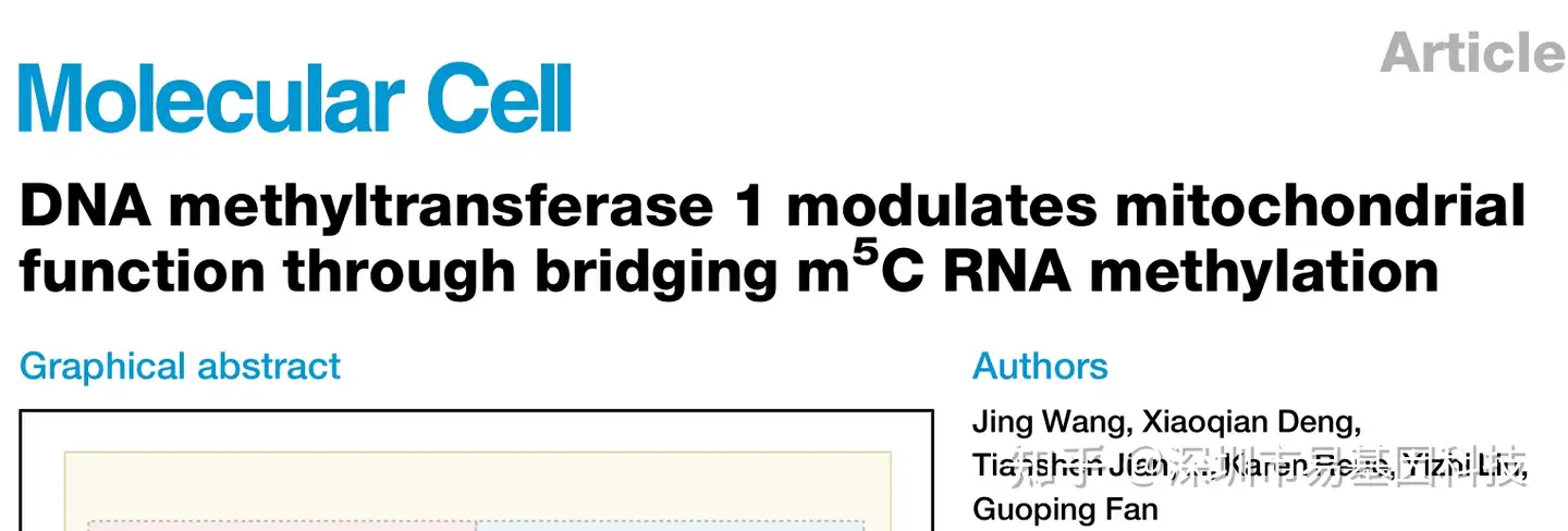 易基因:上科大范国平教授团队RNA-BS揭示DNMT1在m5C修饰中的双重作用及其线粒体功能机制:Mol Cell|项目文章