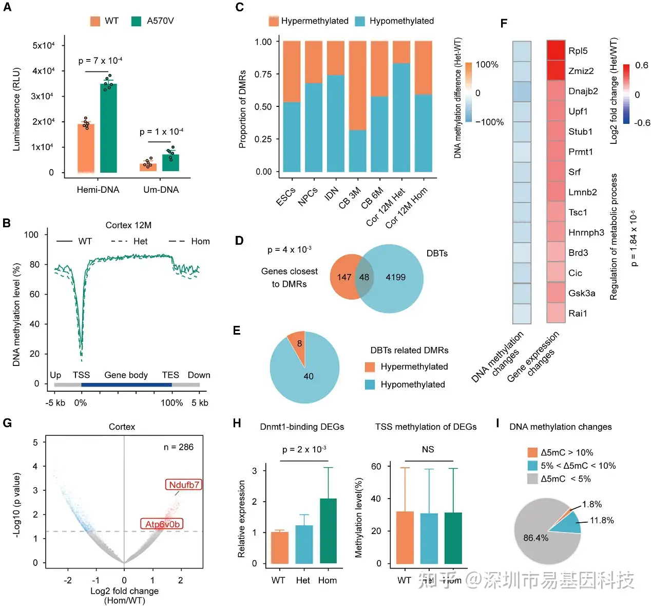 DNA甲基化测序(EM-seq和RRBS):分析DNA甲基化水平,发现突变对DNA甲基化影响较小,但对RNA甲基化影响显著。