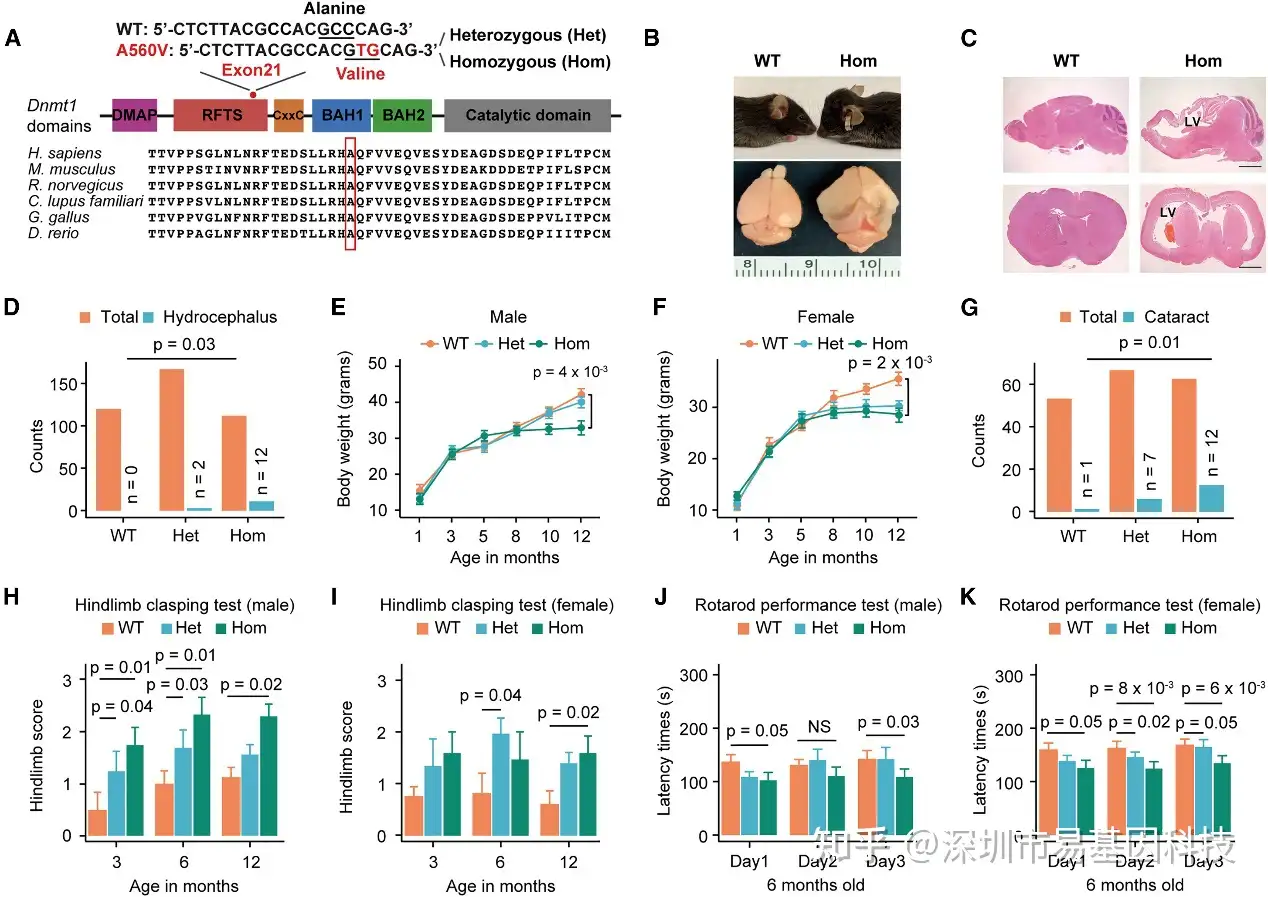 小鼠模型:构建Dnmt1A560V突变小鼠模型,用于研究DNMT1突变对神经系统的长期影响。