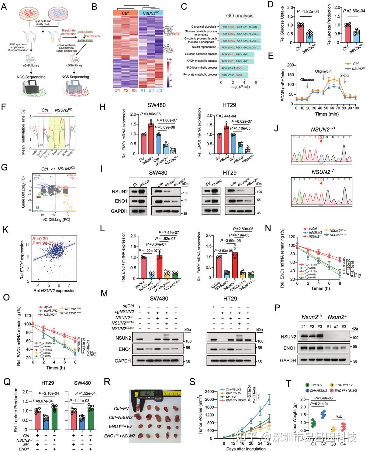 图:NSUN2介导的m5C修饰通过靶向CRC中的ENO1导致葡萄糖代谢重编程。